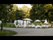 Po określeniu wizji potrzebujemy znaleźć miejsce. W przypadku wesel w plenerze opcje są dwie. Pierwsza, wymagająca nieco większego wysiłku: wynajmujemy namiot i lokalizujemy go na "swoim" terenie. Druga opcja to znalezienie terenu przystosowanego do tego celu. W naszej okolicy miejscem, które przystosowane jest do takich imprez jest Pałac Bagatela, a ja mam przyjemność współorganizować te wyjątkowe wydarzenia.