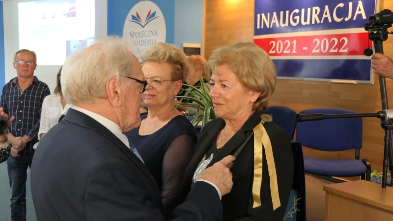- W podniosłym nastroju i klimacie zadumy widzę uśmiechnięte twarze, zadowolone z tego, że znów możemy się spotkać i porozmawiać bez ograniczeń o dobrych czasach naszej aktywności, których doświadczaliśmy wcześniej i planach na przyszłość - stwierdziła Aleksandra Biegańska, prezes Zarządu ostrowskiego uniwersytetu, witając słuchaczy i gości podczas inauguracji roku akademickiego 2021/2022 w auli Społecznej Akademii Nauk w Ostrowie Wielkopolskim.