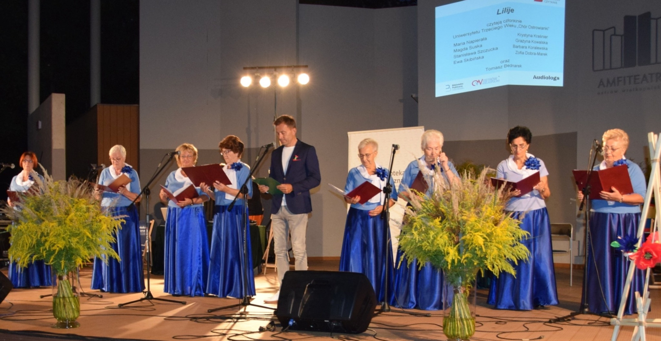 W sobotę 3 września, na zaproszenie Beaty Klimek, prezydent Ostrowa Wielkopolskiego, seniorki – członkinie chóru „Ostrowianki” uczestniczyły w Narodowym Czytaniu w Amfiteatrze w Parku Miejskim. „Ballady i romanse” Adama Mickiewicza. Czytając wspólnie z cenionym aktorem teatralnym i filmowym Tomaszem Bednarkiem, oddały klimat utworu i dynamikę akcji z temperamentem i wdziękiem. Narodowe Czytanie to wydarzenie, które na stałe wpisało się w życie kulturalne i społeczne naszego miasta, trudno więc, aby zabrakło w nim seniorek z ostrowskiego uniwersytetu. Jako ambasadorki promocji czytelnictwa nestorki z tego środowiska podczas wielu spotkań z przedszkolakami, młodzieżą i dziećmi z niepełnosprawnością pokazują od lat jak odżywają słowa zawarte w wybitnych dziełach, stają się żywe, budzą zachwyt, skłaniają do zadumy młodych i starszych ostrowian. Wielki szacunek dla naszych starszych pań.