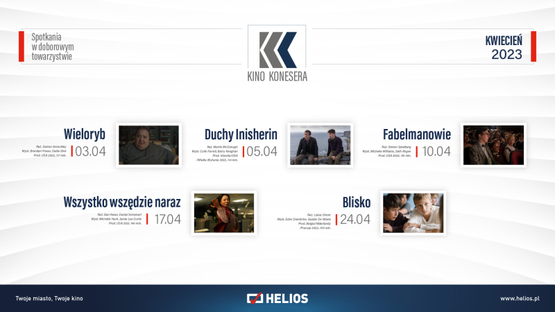 Kino Helios zaprasza na kwietniowe seanse w Kinie Konesera. W marcu wręczono nagrody Amerykańskiej Akademii Filmowej i to na najlepszych Oscarowych filmach opiera się repertuar dla koneserów: