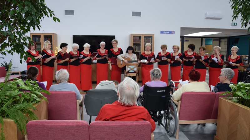 Dzięki temu pensjonariusze przyjęli z entuzjazmem zaproszenie dyrygent chóru do wspólnego śpiewania znanych z lat siedemdziesiątych przebojów, takich jak: „ale to już było”, „hej sokoły”, „pod żaglami Zawiszy”, „to jest twoje miejsce”, „gdybym miał gitarę”, „nad Brazylią zapada już mrok”, „hej tam pod lasem” czy „que sera sera”. Te uzdrawiające melodie oraz charyzmatyczne osobowości członków chóru skradły serca mieszkańcom Domu. Wspólny śpiew pozostanie na długo w ich pamięci, stąd warto – mówili - pomyśleć o organizacji podobnych imprez artystycznych w przyszłości.