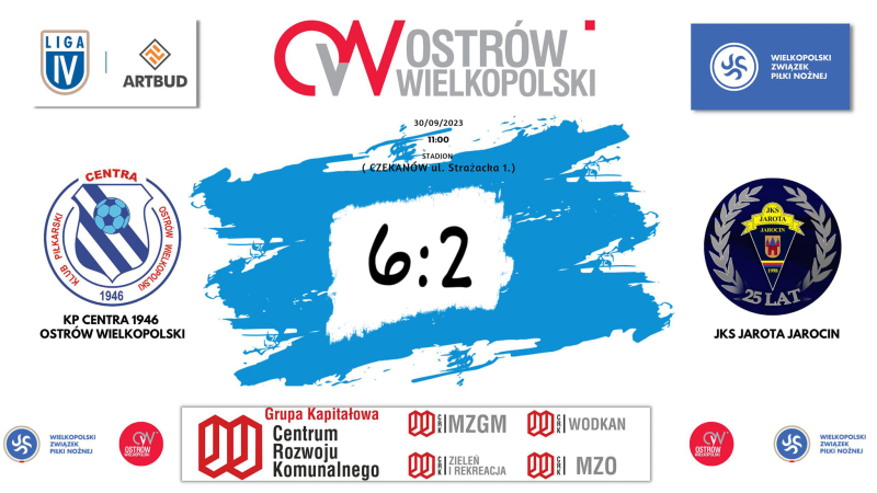 Boisko w Czekanowie dobrze służy piłkarzom Centry. Ostrowianie odnieśli na "swoim" nowym obiekcie drugie zwycięstwo tym razem pokonując Jarotę Jarocin. Było to też drugie z rzędu "hokejowe" zwycięstwo Centry tym razem jeszcze okazalsze niż przed tygodniem bo aż 6:2.