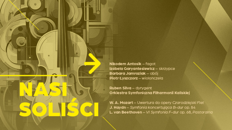 W niedawno rozpoczętym sezonie czekają na Państwa niezapomniane występy kaliskich muzyków. Program tegorocznej prezentacji muzyków Orkiestry Symfonicznej Filharmonii Kaliskiej w ramach cyklu Nasi Soliści obejmuje dzieła wielkiej trójki klasyków wiedeńskich. W utworach W.A. Mozarta, J. Haydna oraz L. van Beethovena usłyszymy muzyków z wieloletnim stażem w Orkiestrze FK: Nikodema Antosika (fagot), Izabelę Garyantesiewicz (skrzypce), Barbarę Jamroziak (obój) oraz Piotra Łyszczorza (wiolonczela). Na co dzień, w trakcie trwania wielu sezonów koncertowych Filharmonii Kaliskiej są oni członkami zespołu składającego się z kilkudziesięciu muzyków, którzy w ramach pracy orkiestry dbają o harmonię brzmienia razem z koleżankami i kolegami zajmującymi miejsca w równych rzędach tych samych sekcji. Podczas nadchodzącego koncertu zaprezentują pełnię swojego talentu i efekty pracy muzycznej z pozycji solisty, pod czujnym okiem publiczności, a także z towarzyszeniem Orkiestry Symfonicznej Filharmonii Kaliskiej prowadzonej przez dyrektora FK - Rubena Silvę.