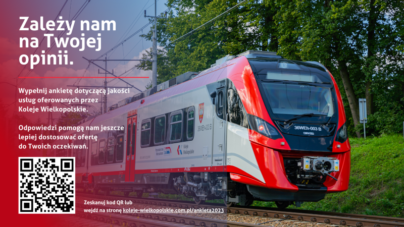 W okresie od 13 do 26 listopada Koleje Wielkopolskie realizują wśród pasażerów badania jakości świadczonych usług. Kwestionariusz z pytaniami dostępny jest online, co oznacza, że można go wypełnić w dowolnym czasie i z dowolnego urządzenia z dostępem do Internetu. Badania są całkowicie anonimowe, a samo wypełnienie ankiety zajmuje kilka minut.
