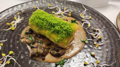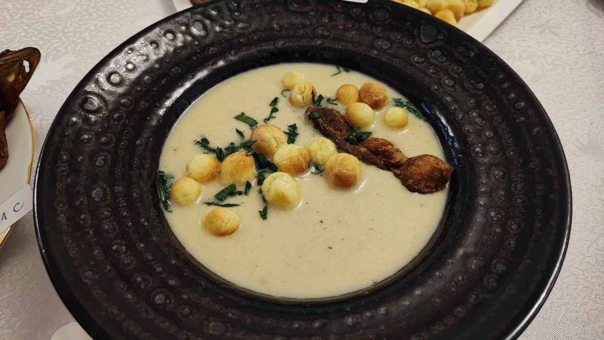 Michałowi Kasprzykowi II MIEJSCE za ,,Kremowy przysmak rybny z groszkiem ptysiowym i faworkiem z karpia”