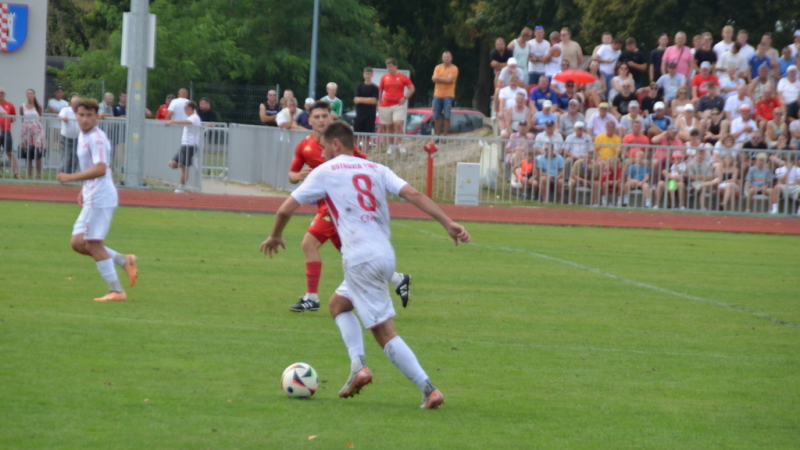 Początek z lekką przewagą gospodarzy, ale spotkanie szybko się wyrównało. W 20 minucie przed szansą stanął Adam Sobański, ale futbolówkę odbił golkiper miejscowych Tobiasz Nowicki.