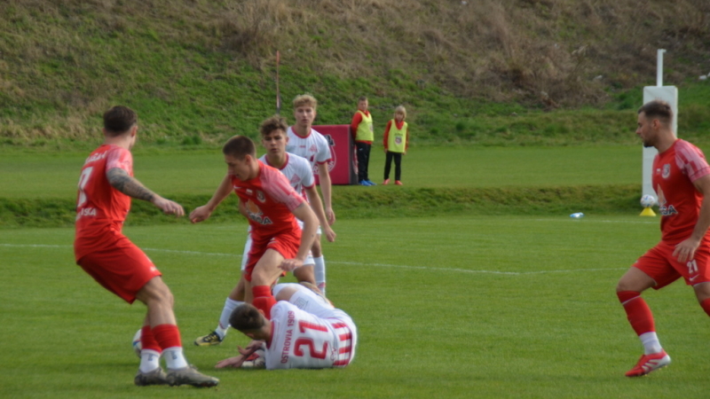 Biało-czerwoni przystępowali do sobotniego spotkania poważnie osłabieni. Za żółte kartki musieli pauzować Kacper Dziuba, Jakub Kramarczyk i Adam Wojciechowski, zabrakło także Mateusza Rachwalskiego (sprawy osobiste). Trzeba również do grona nieobecnych zaliczyć kontuzjowanych Grzegorza Kuświka i Dominika Walczaka, którzy wypadli z gry na dłuższy okres.