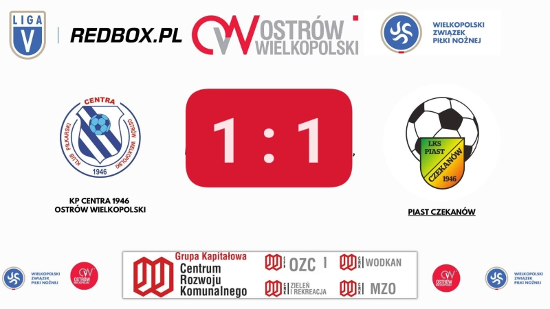 Remisem 1:1 zakończył się derbowy pojedynek w Redbox V lidze pomiędzy Centrą Ostrów i Piastem Czekanów.