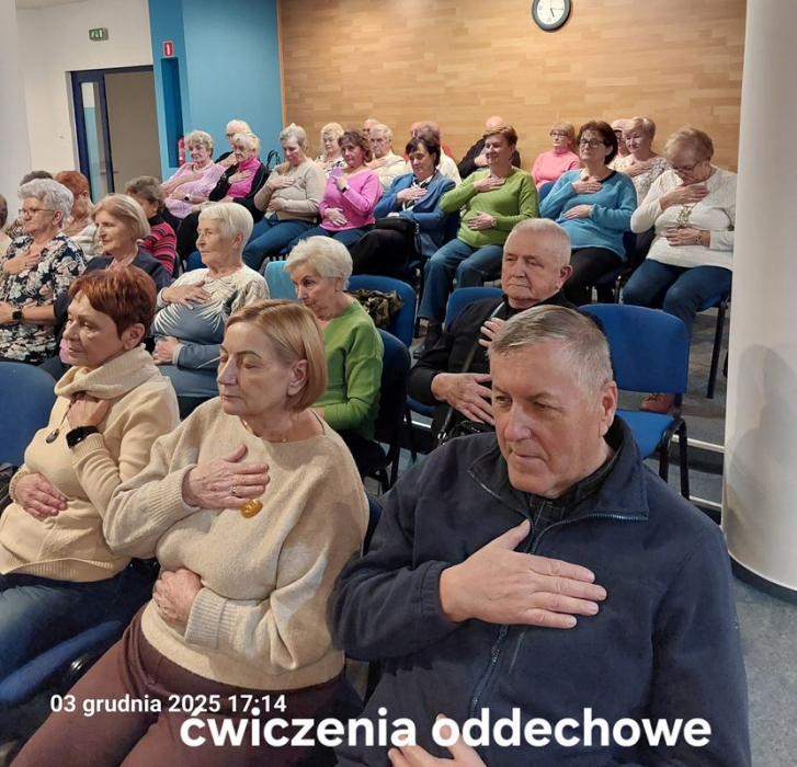 Tak też było w dniu 3 grudnia 2025 roku w auli Społecznej Akademii Nauk w Ostrowie Wielkopolskim podczas wykładu audytoryjnego połączonego z ćwiczeniami oddechowymi prowadzonego przez Panią Izabelę Strąk, trenera oddechu, który w zakresie swoich kompetencji wspiera innych w odkrywaniu i praktykowaniu świadomego, ukierunkowanego oddechu. To było niezwykle pożyteczne i interesujące spotkanie edukacyjne na temat: „Z oddechem po zdrowie – moc świadomego oddechu”.
