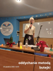 Na wstępie Pani Izabela Strąk stwierdziła, że oddychanie to narzędzie numer jeden do poprawy zdrowia. Poinformowała , że choć oddech towarzyszy nam nieustannie, niewielu z nas robi to w sposób świadomy i naprawdę wspierający zdrowie oraz samopoczucie. Podzieliła się ze słuchaczami swoją bogatą wiedzą na ten temat i doświadczeniem zdobywanym w bezpośrednich kontaktach z ludźmi. Na konkretnych przykładach przekonywała, dlaczego warto, poprzez ćwiczenia oddechowe, zadbać o zdrowy styl życia zapewniający organizmowi lepszą odporność na choroby. Mówiąc o wartości sesji oddechowych przeprowadziła, akceptowany przez wszystkich, trening oddechowy. Pokazała, jak w warunkach domowych można codziennie w ciszy i spokoju ćwiczyć oddech jako czynnik wpływający na długość życia, jak radzić sobie z oddechem i emocjami.