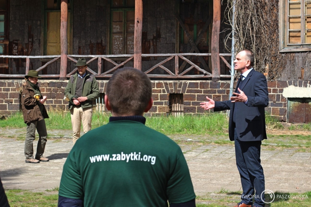 22.04.2017 r. pod Pałacem Myśliwskim w Mojej Woli (gm. Sośnie) odbyło się spotkanie w ramach Tygodnia dla Dziedzictwa Polskiego. Wśród zgromadzonych gości znaleźli się przedstawiciele Fundacji Ratowania Zabytków i Pomników Przyrody, lokalne media oraz osoby zainteresowane dalszym losem zabytku. O godzinie 12:00 rozbrzmiał myśliwski hejnał, który pozwolił przenieść się myślami w czasie do lat świetności tego miejsca. Przybyłych gości powitał prezes fundacji - Karol Marczak.