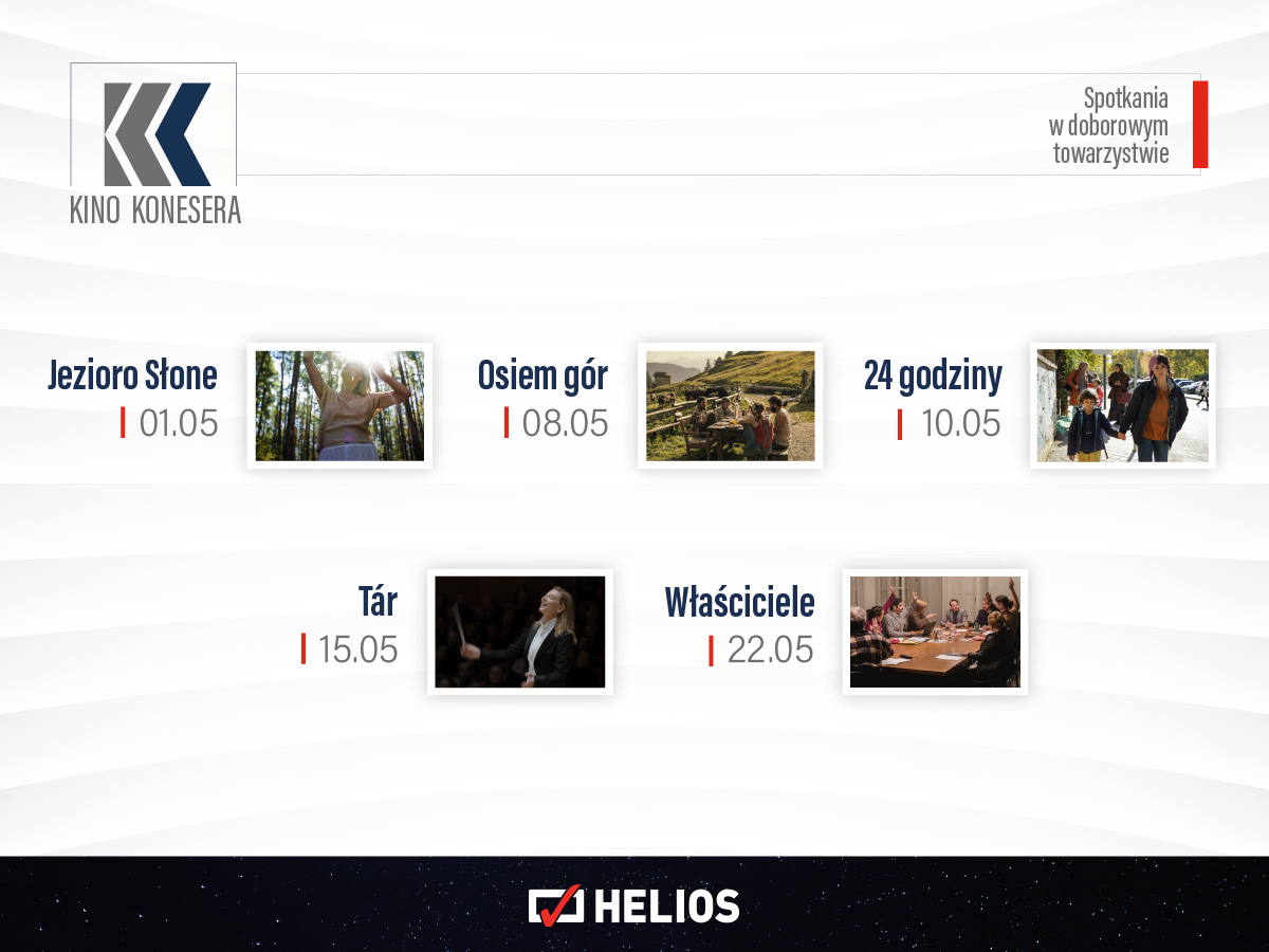 Kino Helios zaprasza na majowe seanse w Kinie Konesera. Na naszych Widzów czekają następujące tytuły: