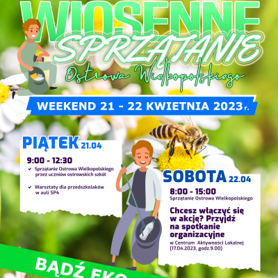 Gotowi na Wiosenne Sprzątanie Ostrowa Wielkopolskiego? Już po raz kolejny mieszkańcy będą wspólnie sprzątać miasto. To akcja, która na stałe wpisała się w kalendarz wydarzeń. Każdego roku uczestniczą w niej tysiące osób – dorośli, dzieci, rodziny, samorządowcy, dziennikarze, sportowcy, harcerze, ratownicy wodni. Każdemu przyświeca jeden cel i wspólne dobro – czyste miasto. Tegoroczna akcja sprząt...