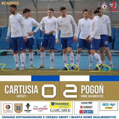 Drugie z rzędu zwycięstwo w rundzie wiosennej odnieśli piłkarze Pogoni Nowe Skalmierzyce pokonując na wyjeździe Cartusię Kartuzy 2:0.