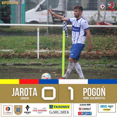 Bramka zdobyta na dwie minuty przed końcem meczu dała Pogoni Nowe Skalmierzyce zwycięstwo 1:0 w meczu z Jarotą Jarocin.