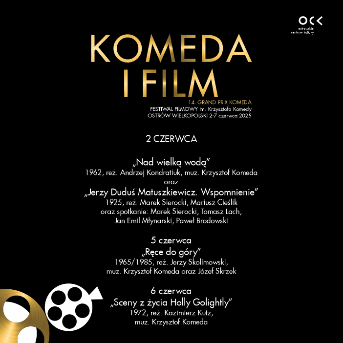 Nazwisko patrona zobowiązuje. Wiedzą o tym organizatorzy Grand Prix Komeda. Festiwalu Filmowego im. Krzysztofa Komedy w Ostrowie Wielkopolskim. Tegoroczna, 14. edycja, wydarzenia to między innymi trzy filmy z muzyką Krzysztofa Komedy i rozmowy po tematycznych projekcjach.