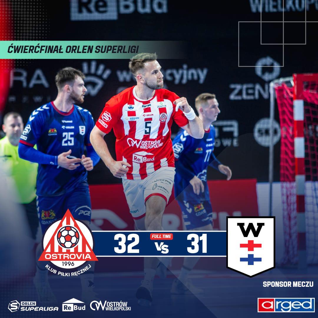 Rebud KPR Ostrovia po ciężkiej walce pokonała Wybrzeże Gdańsk 32:31 w pierwszej rundzie play-off i już za tydzień w Gdańsku może zapewnić sobie awans do półfinału Orlen Superligi.