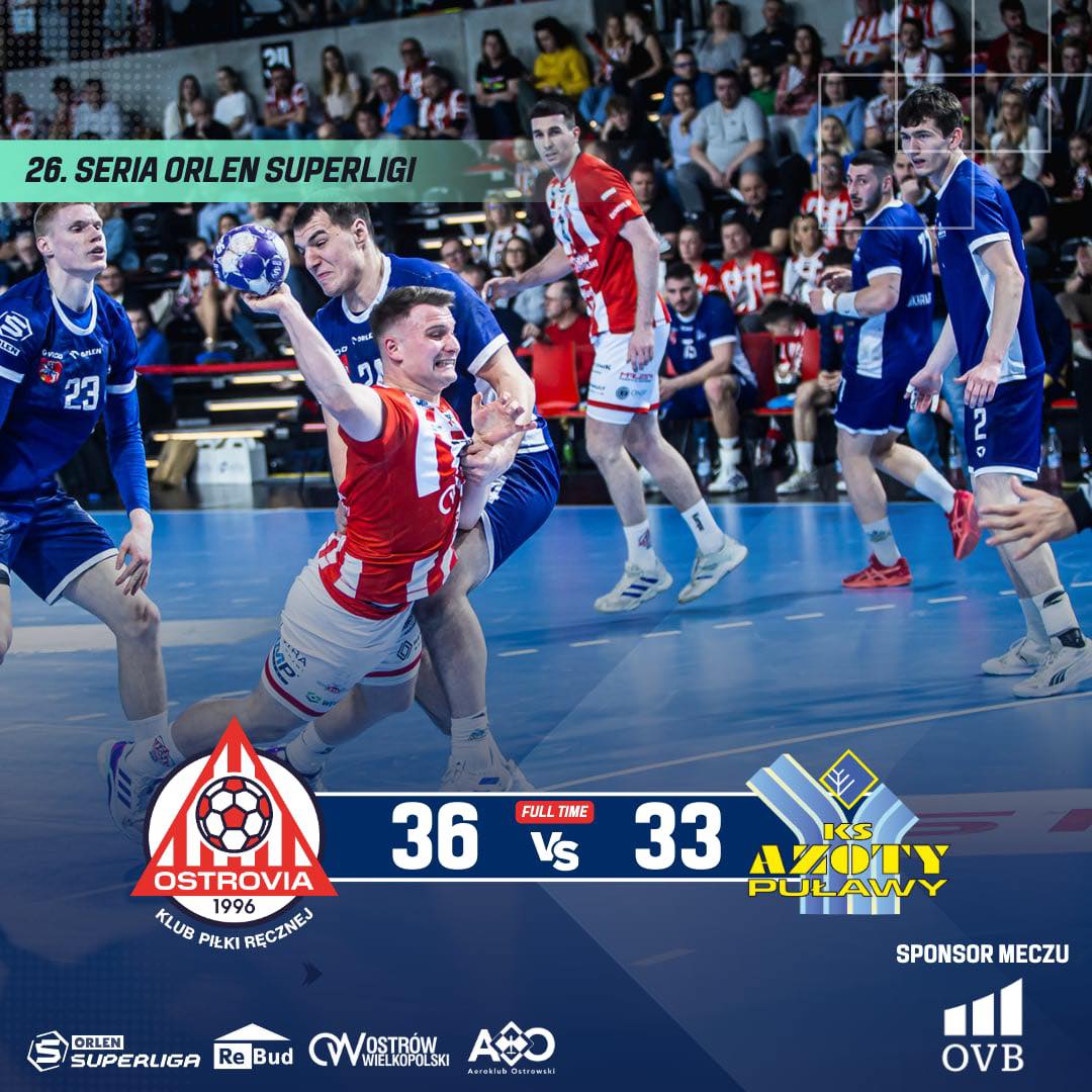 Udanie zakończyli rundę zasadniczą szczypiorniści Rebud KPR Ostrovii pokonując na własnym parkiecie Azoty Puławy 36:33.